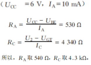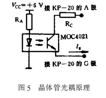 只需取下圖1所示的D1和D2兩個二極管,然后接到MOC4021光電隔離器的二極管側(cè),另外2個端點(diǎn)按圖5所示接到晶閘管的控制極G和陽極A上。Rc及Rx的參數(shù)設(shè)計如下: