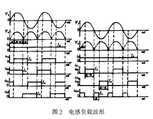 下次T1觸發(fā)導(dǎo)通后重復(fù)上述過程。根據(jù)各元件的導(dǎo)通狀況,可知輸出電壓波形及各元件電流波形如圖2所示。