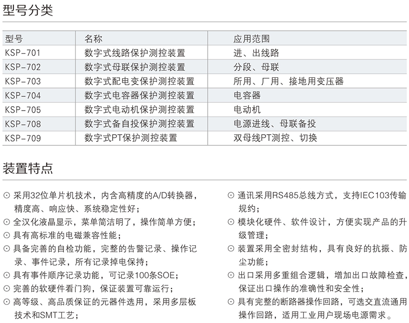 KSP-700系列數(shù)字式保護測控裝置是我公司為適應我國工業(yè)電氣自動化發(fā)展的需要,積累多年電力自動化運行經(jīng)驗,吸收國外先進技術,向廣大用戶推出的集保護、測量、控制、通訊于一體的高性能數(shù)字式保護測控裝置,廣泛適用于35kV及以下電壓等級變電站、開關站及廠用電的新建和改造工程。為其配電系統(tǒng)的保護與控制提供完整的解決方案。裝置可以集中組屏安裝,也可以分散在開關柜就地安裝。
